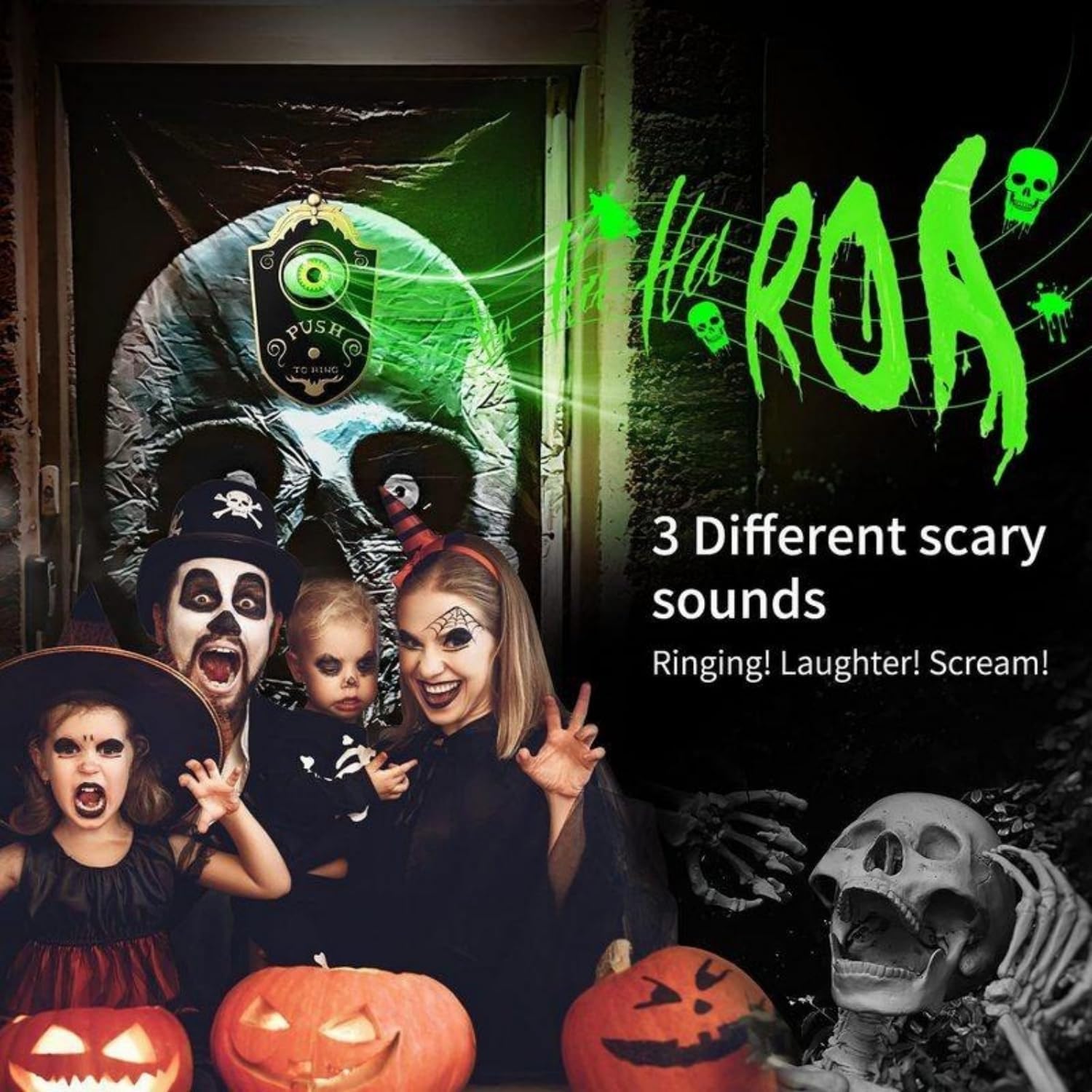 This spooky door bell is just amazing. If you are looking for a nice touch or something simple to put up for the trick or treaters - this will do the trick! Such a fun item to add to your Halloween decorations and fun for all ages.