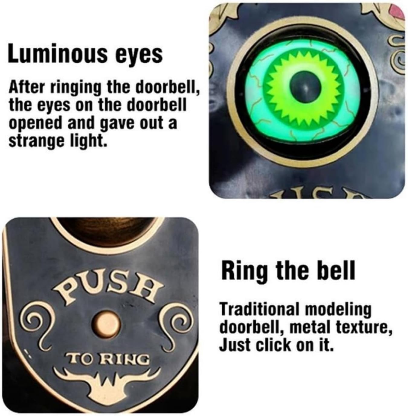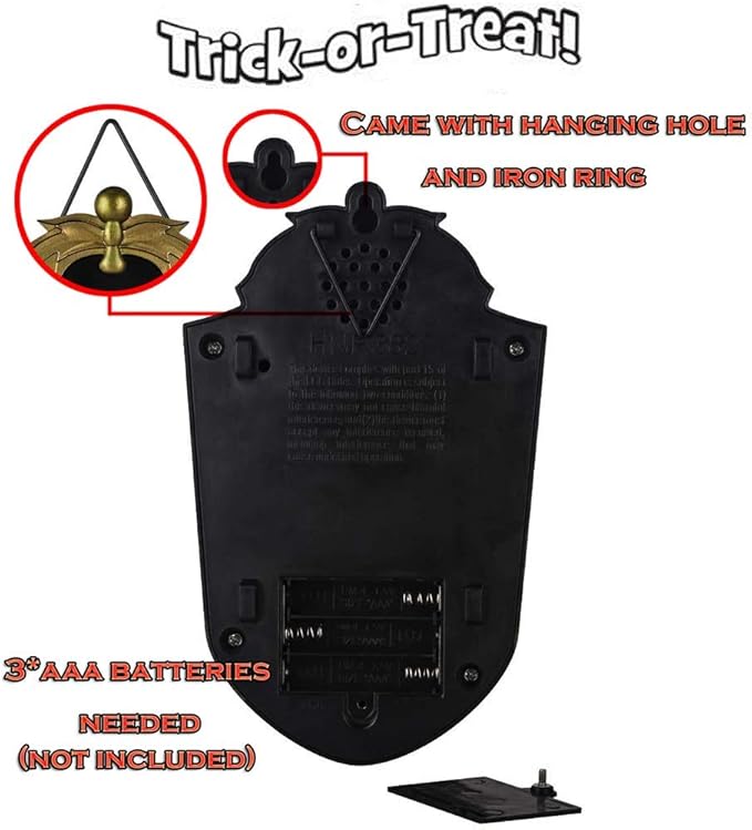 Everyone loves ringing the bell, listening to all the different sayings and watching the light up eye move. The lights make it extra spooky in the dark. You will receive many compliments and comments on it.Animated Haunted House Halloween Decoration is a great party and bar prop,Scare your guests with this Creepy Doorbell that adds a spooky ambiance to your home.