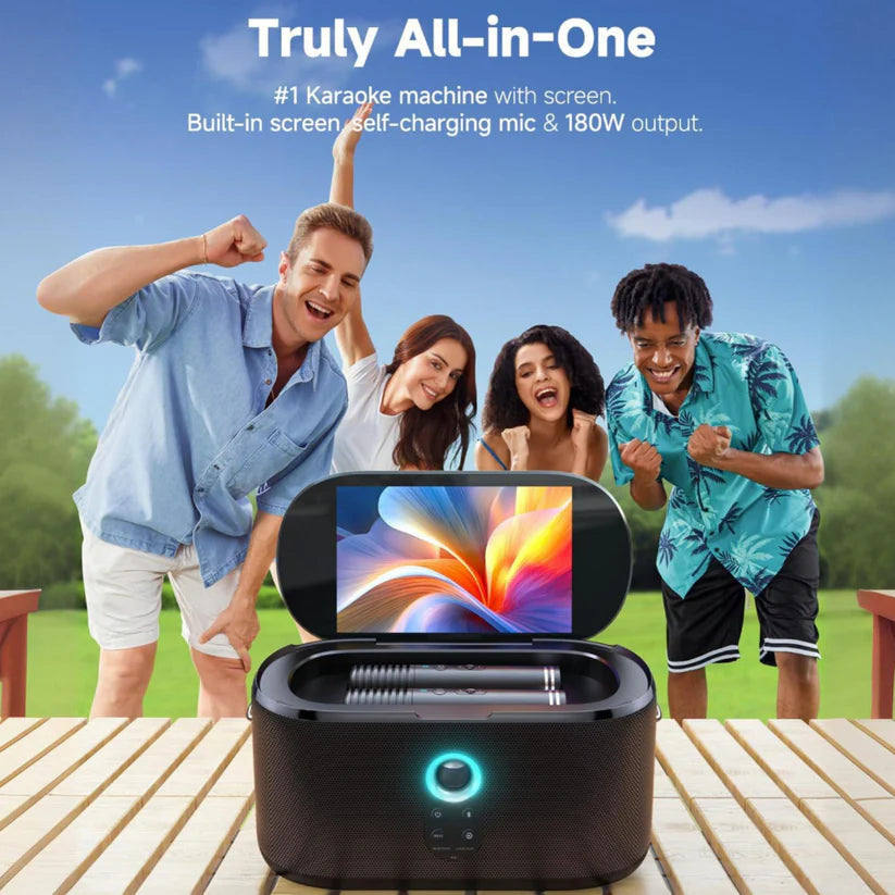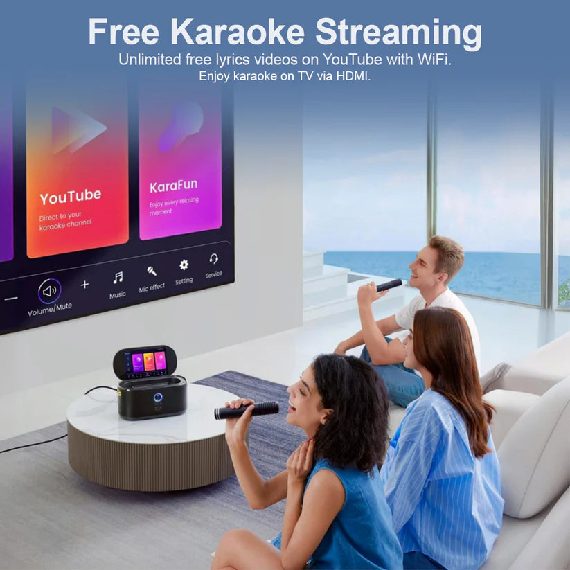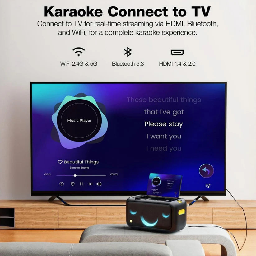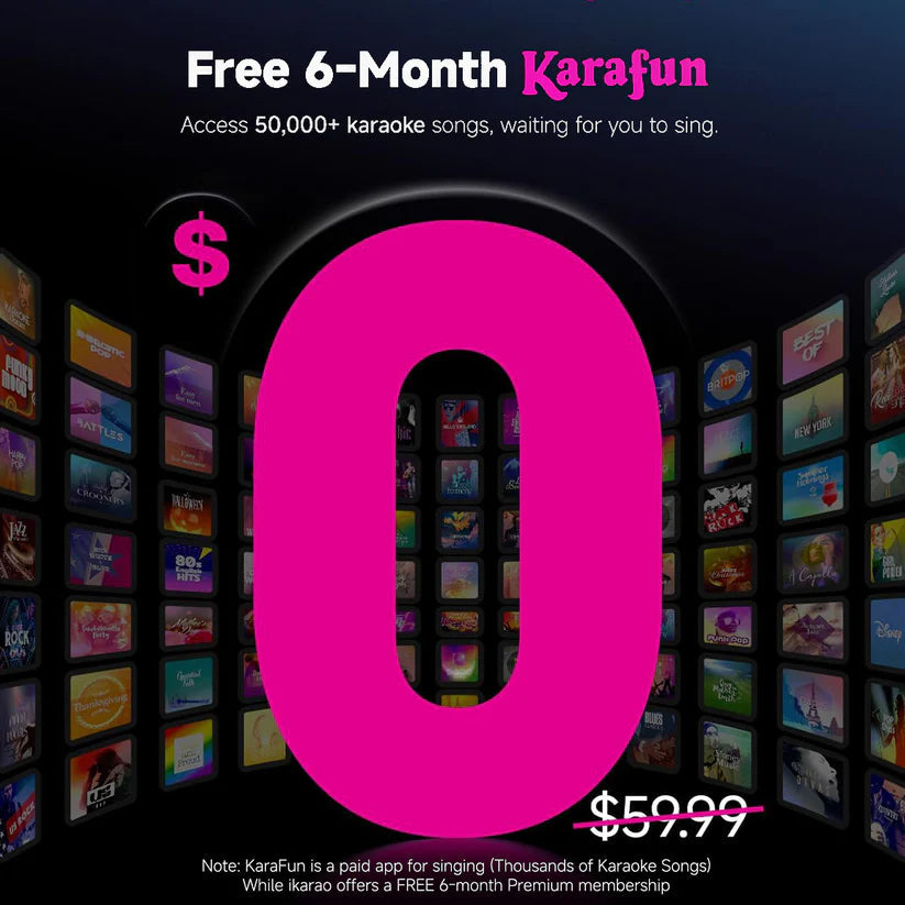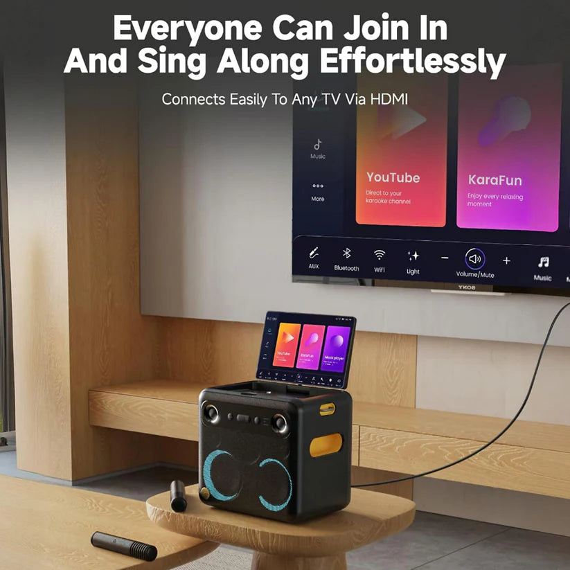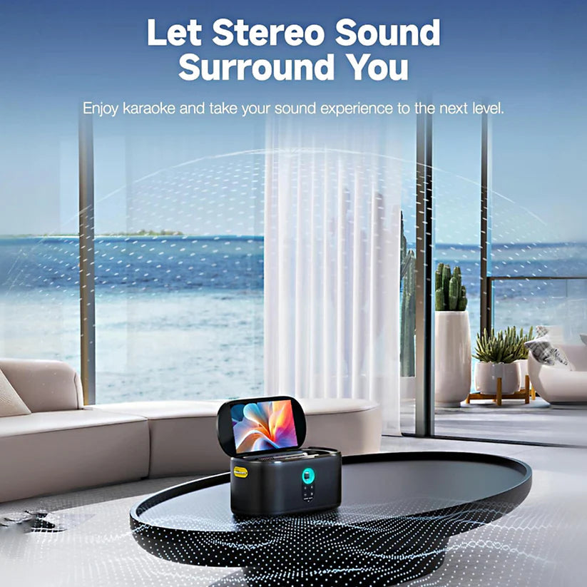 With 300W of peak power, the Ikarao Break X2 serves up rich, dynamic sound that adapts to any space—whether it’s your living room or a backyard BBQ. It comes with built-in top-tier microphones and an all-in-one 10.1" tablet that lets you seamlessly browse and enjoy an extensive library of songs. No complicated setup, no extra tools—just focus on the fun of singing.